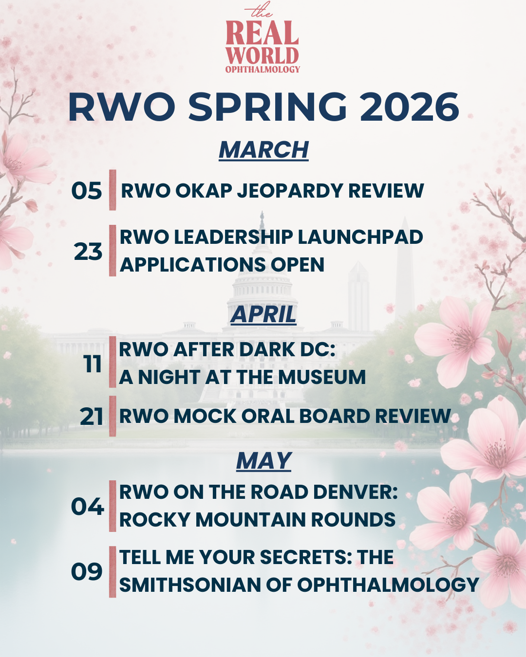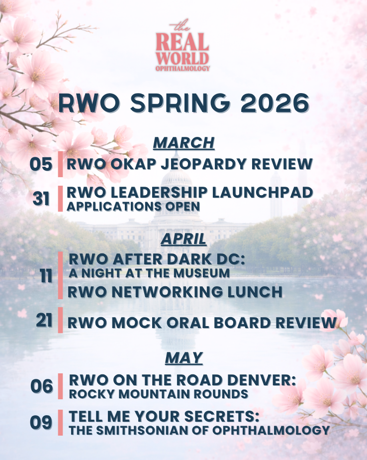RWO is where the world's foremost ophthalmology experts unite to illuminate your journey beyond training. Join us for engaging virtual meetings, enlightening podcasts and captivating in-person events- all FREE and crafted by physicians who've walked your journey.