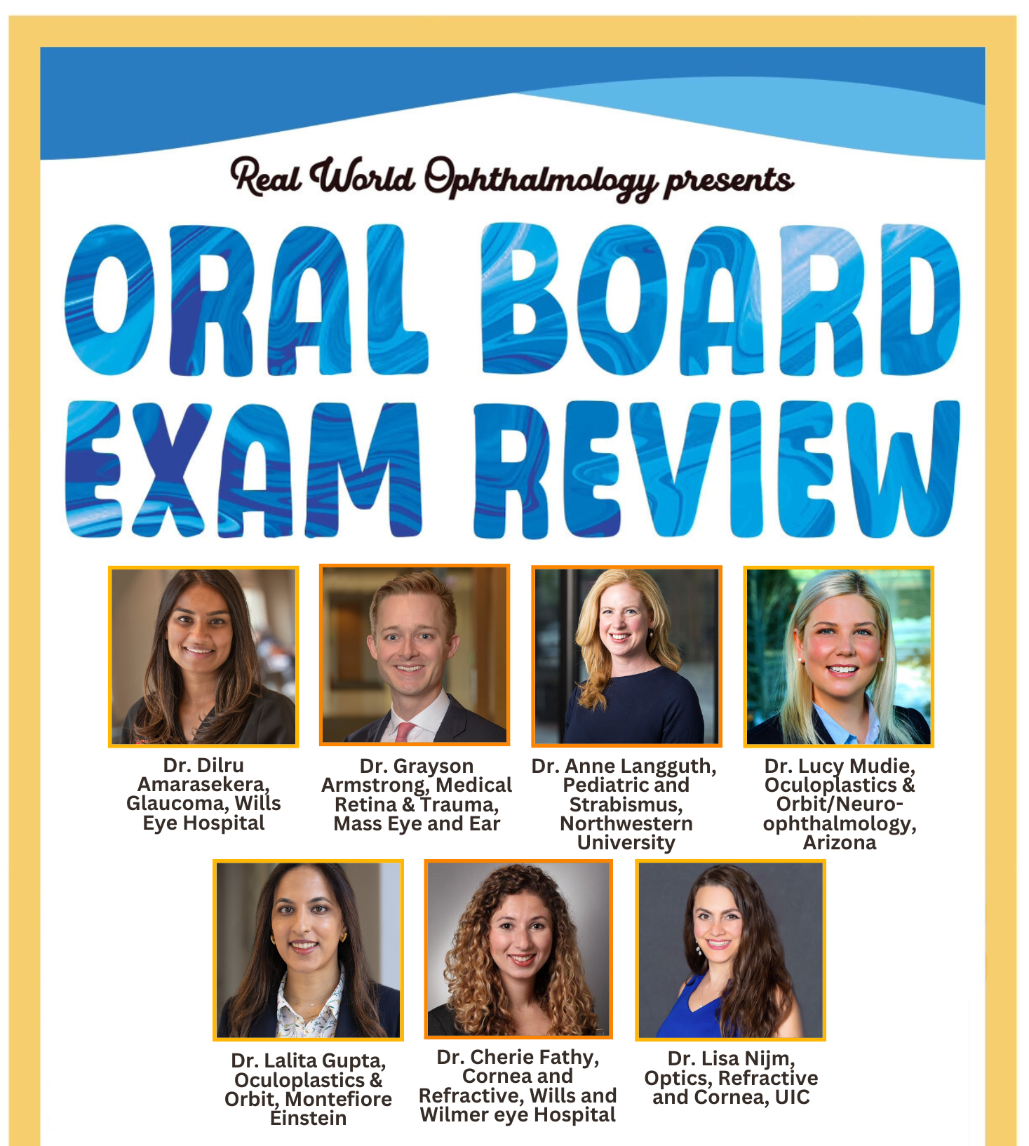 We will cover anterior segment, retina, glaucoma, neuro-ophthalmology, oculoplastics, peds, refractive, and more—the exact topics you’ll face on the boards.